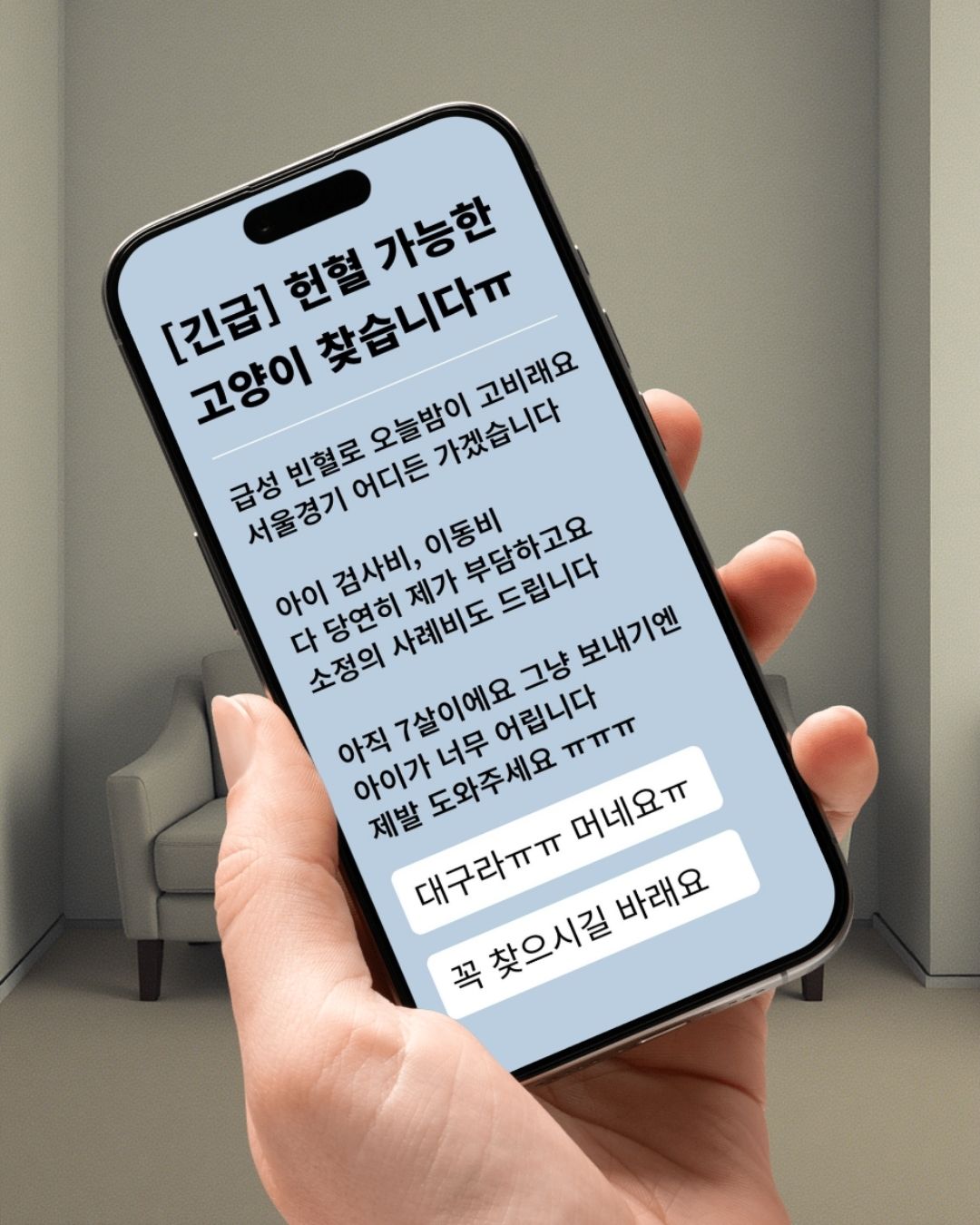 고양이 20세 시대를 맞이하며, 수혈 치료가 필요한 아픈 고양이들도 점점 늘어나고 있습니다. 하지만 고양이 혈액은 항상 부족합니다. 과거에는 수혈이 필요한 급박한 상황이 오면 보호자가 직접 백방으로 피를 구하러 다니거나, 비용을 지불하고 혈액을 구매해야 했습니다.